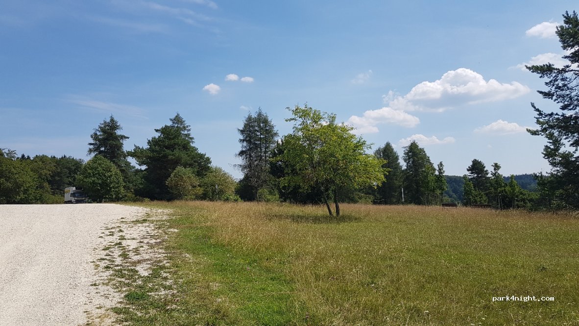 Abartig, wir waren gestern da. mindestens 8 Wohnmobile, z.T. querstehend. Stühle, Tische und Grills draußen. Wie auf einem CP. Brandlöcher in der Wiese und erlosche Feuerstellen. DIE SCHWÄBISCHE ALB IST EIN BIOSPHÄRENRESERVAT und kein Campingplatz. Dieser Platz ist bereits missbraucht und verbrannt. Wenn sich hier einige Egoisten nicht etwas am Riemen reißen wird er für Wohnmobile gesperrt.