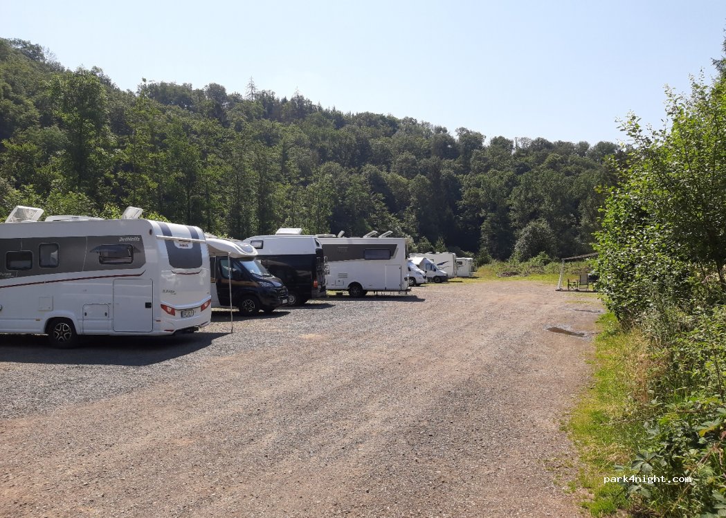 A big gravelled parking area near a good restaurant. Fresh trout, cold beer at the guesthouse. Beautifull walking routes start at the parking. Located on the bottom of a green and lush valley. Ideal for dogowners. All in all, 5 out of 5
