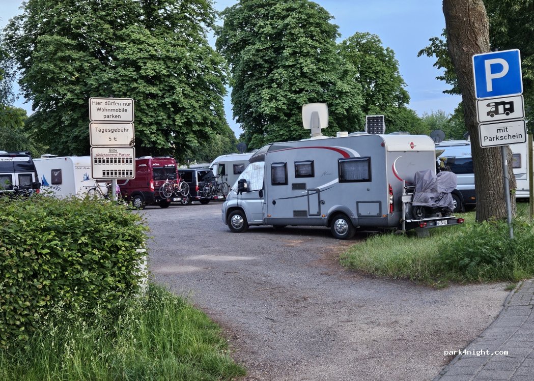 Der Platz war leider voll. Der Ausweichplatz auf der Festwiese gesperrt. Standen dann bei Wesavi-Bad. Für größere Mobile nicht geeignet, Pkw-Parkbuchten. Die Altstadt ist fußläufig sehr schnell erreichbar. Konnten am Morgen schön Baden