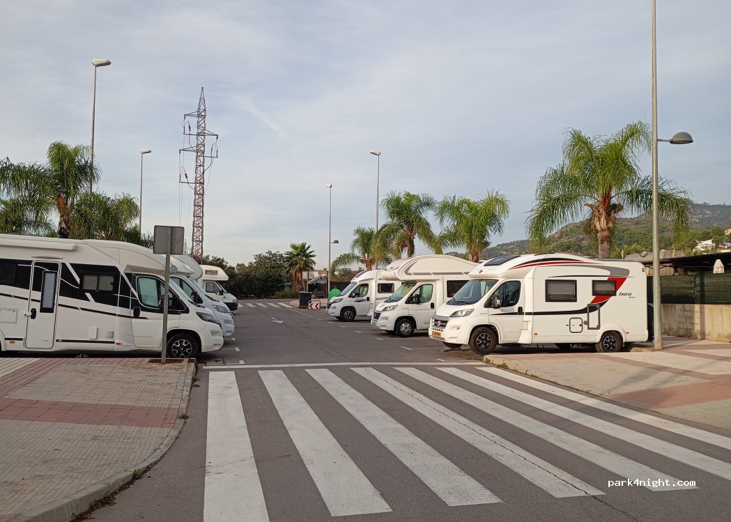 Plazas limitadas. Hay turismos que se saltan la prohibición de aparcar ahí a pesar de que está indicado. La señal indica máximo 1 noche. Dormimos ahí para ir al festival Reggae del Rototom. Muy iluminado y algo ruidoso por el paso de la gente, la cercanía con la carretera general y una especie de guarderia de perros al otro lado.