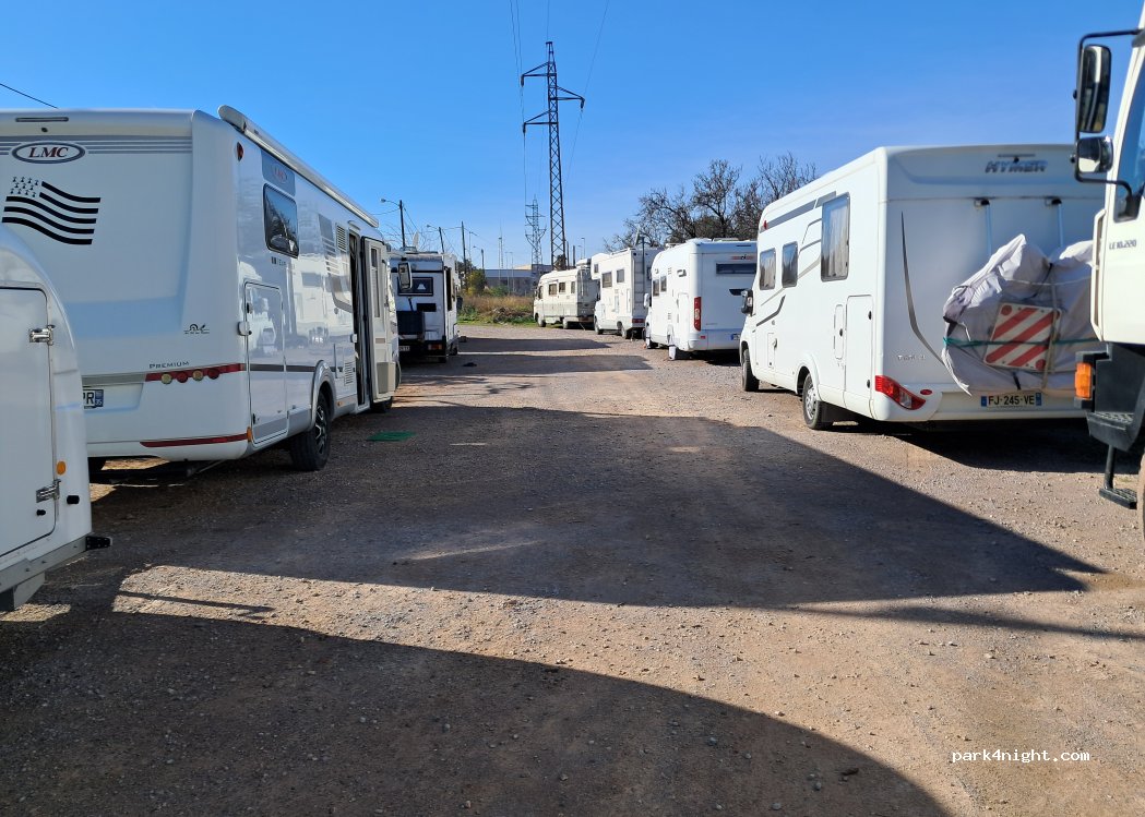 Petit parking en terre .une dizaine de places juxtant l aire de service (3eme photo) A 50m parking sur bitume 18 places .Et occupé par des riverains en garage mort. . parking autorisé 1 jours ? Bouillant. aboiement des chiens. Poubelles de bonne heure. passage du train. Près du centre-ville.