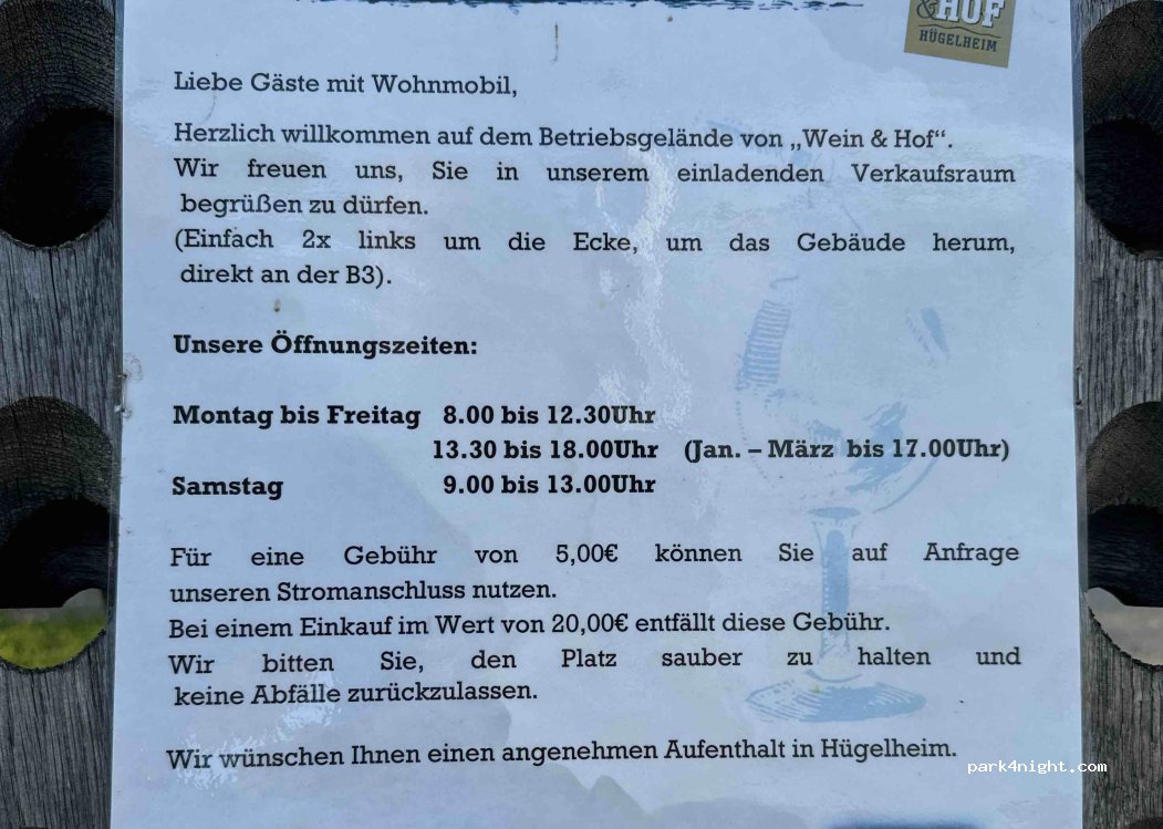 Ein ruhiger Platz abseits der Hauptstraße. Aber! Nur wenn keine Weintrauben angeliefert werden. Denn dann wird es laut. Dies bitte nicht als Kritik verstehen, denn es ist schließlich eine Winzergenossenschaft. Der Besucher sollte sich darauf einstellen. Wir können noch die Sportgaststätte vom örtlichen Fußballverein um die Ecke empfehlen. Dort haben wir einen angenehmen Abend verbracht.