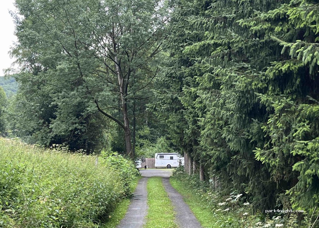 Ein Parkplatz im Wald in einem tiefen Tal...kein Netz, kein Wlan, kein Sat-Empfang, selbst unser Navi hatte keinen GPS -Empfang mehr ! Aber wer seine Ruhe sucht...Super!