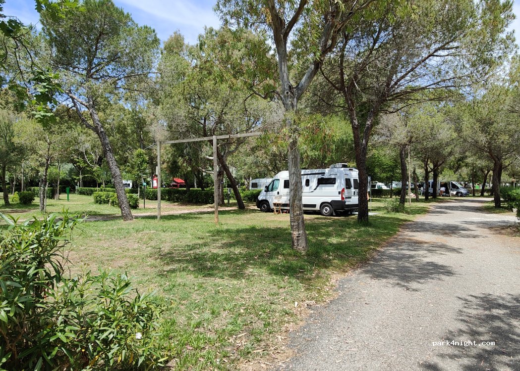 Einer der schönsten Womo Plätze in der Umgebung. Restaurant auf dem Platz auch empfehlenswert. Viele Bäume und Büsche, ein kleiner Pinienwald trennt das Gelände vom Strand.