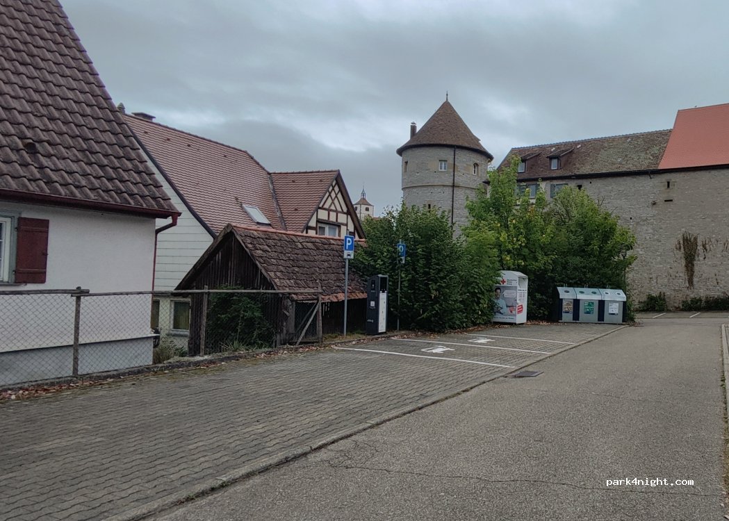 A very cute village perched on high castle walls. Just two parking berths (flat) but in a pinch it may be acceptable to park on the central island (sloping). I really enjoyed exploring the castle and towers, and the path down to the river and outdoor swimming pool is great for dog walks. The only drawback is proximity to the road (noise) and the house right on top of you is occupied.