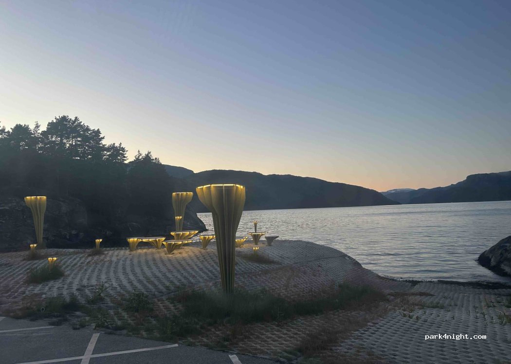 Schöner, ruhiger Parkplatz direkt am Fjord - man kann in beide Arme des Sandsfjord schauen. Traumhafter Blick. Sehr saubere Toiletten im Fährgebäude. Der moderne Picknick - Bereich wird abends zur Lichtskulptur. Wir hatten das Glück, abends Delfine zu sehen.