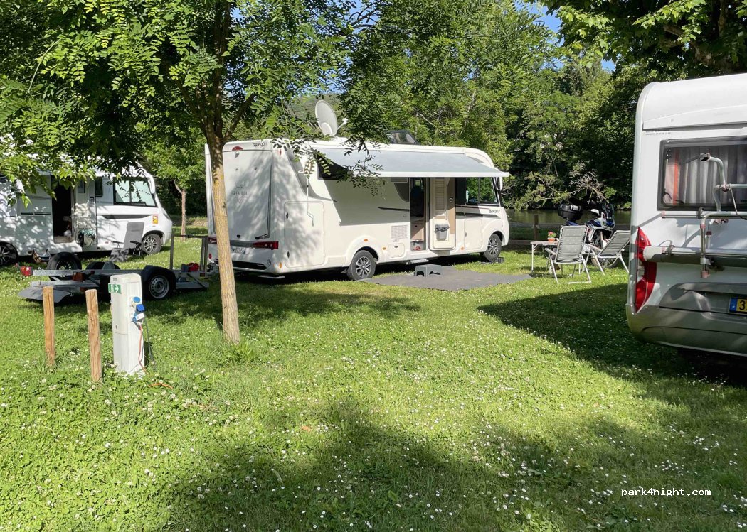 A lovely place near to the river, okay wc/bath and a nice town close to the place. Big pitch and we give 15€ for one Night 2 person and a dog in a Autocamper.