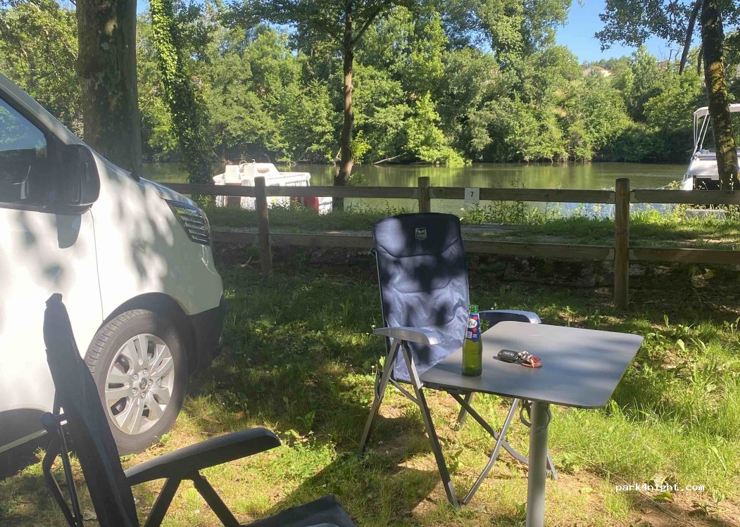 Super endroit pour la nuit, au bord du Lot. Calme et ombragé au tarif très correct de 11,40 € pour la nuit à 2 personnes