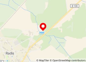Inmitten einer Lichtung an einem Angelteich. Direkt an der Bundesstraße 100 aber sehr ruhig in der Nacht. Kein Service! Parken nur mit Angelkarte, die man nur vor Ort in einem Angelgeschäft kaufen kann.