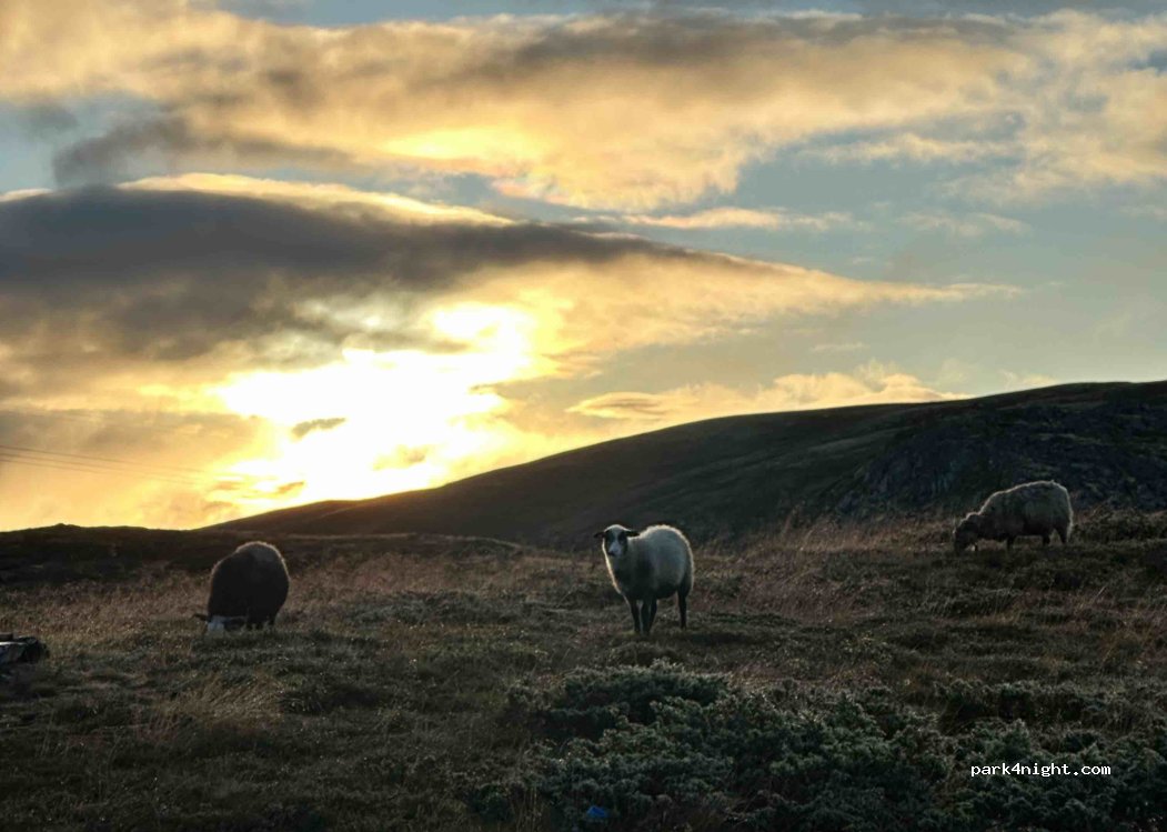 Beautiful spot, elevated, hidden from the road. Compeletely silent at night, morning in the company of grazing sheep. Few more spots along Peer Gynt road. Totally recomend taking this route! Unfortunately found some human poop and tissues - please ppl, go do your business away, in bushes, dig a hole and put tissues in, cover with moss. Not that difficult - respect Nature and fellow voyeurs!