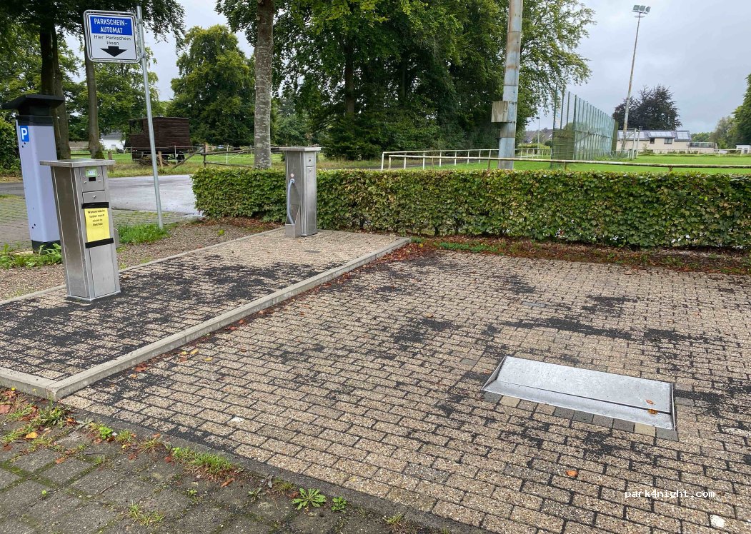 Super Parkplatz ohne V/E. Mülleimer vorhanden. Allerdings ist die MTB Bahn gut besucht und auf dem Parkplatz fahren die Kidddis teils auch. Abends (u.a. donnerstags) Fußballspieler bis 22 Uhr. Nachts aber super ruhig.