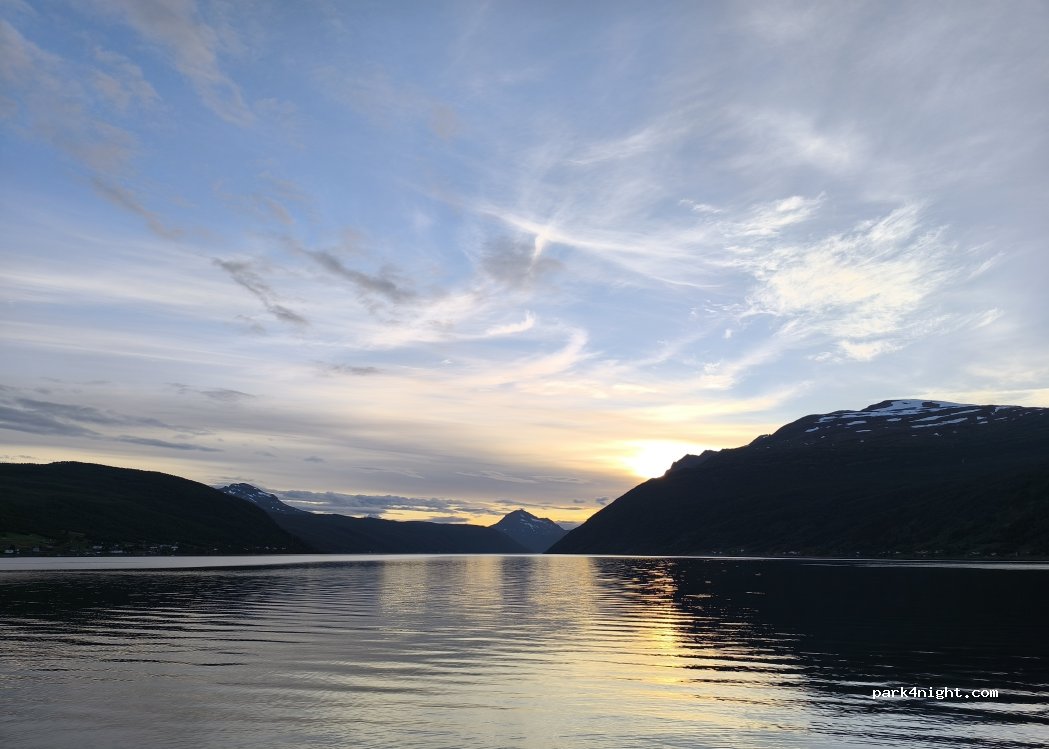 Camping van alle services voorzien: elektriciteit, drinkwater vullen, grijs en zwart water legen, wasmachine en droger samen voor 40 NOK, 6-7 minuten douchen voor 10 NOK, keukentje. Eigenaar is aardig maar spreekt geen Engels, dus gebrekkig Duits kwam van pas. Douche is netjes, toiletten kunnen wel beter onderhouden worden. Na uren kijken hebben wij dolfijnen gezien!