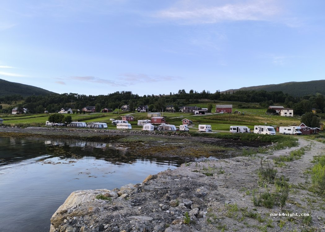 très joli petit camping très soigné tous les services même une grille pour les eaux grises le long d'un fjord avec en plus un tenancier cordial... que demander de plus ?
