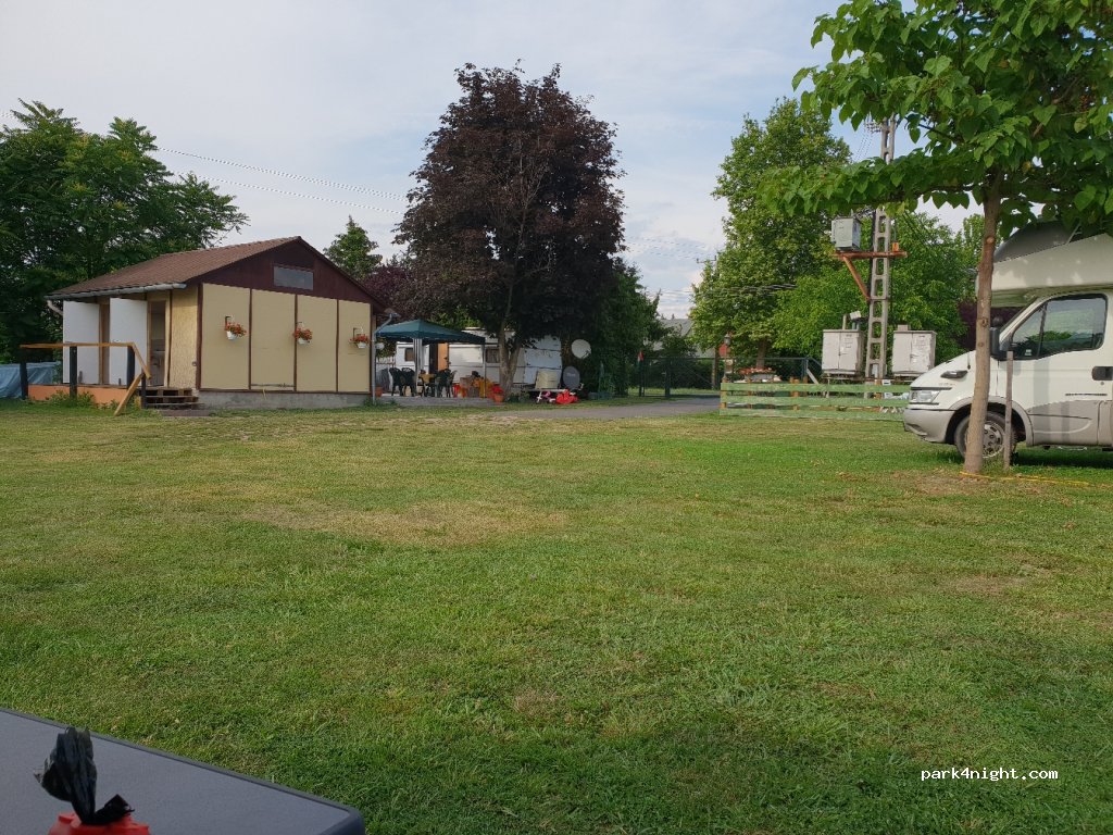 Little camping but we managed to fit a 7meters motorhome with no problems. For us it was ideal for transit, especially that the access is very easy from highway and short. Sanitaries were very clean. The owner was very friendly and nice, he was very interested in our stay there and made us feel comfortable. We paid €30/night for 2adults and a motorhome with all the facilities included(only cash).