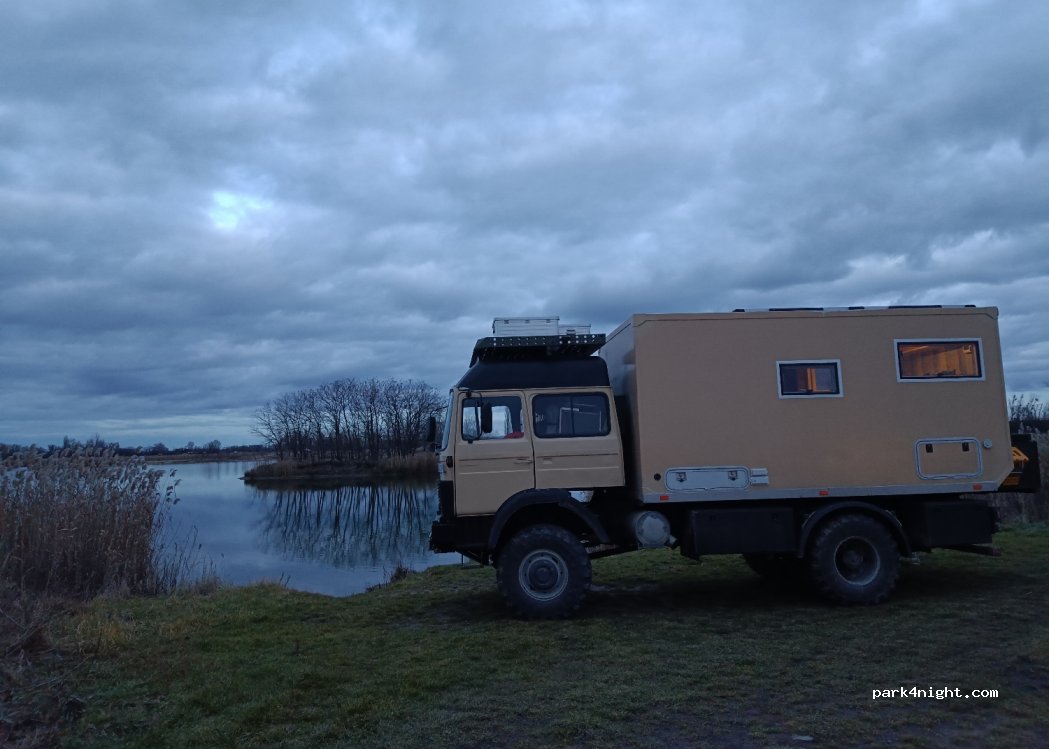Vhodne miesto na zastávku počas dňa. Je to jazero, kde sú vždy rybári. V lete sem prichádzajú ľudia z okolia relaxovať. Kempovanie je zakázané. Pozor na to. Počas dňa by to nemal byt problém.