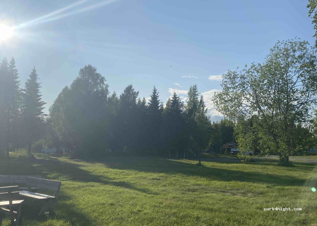 voor 300sek met elektriciteit en gratis douchen. niet extra betalen voor meer dan 2 personen. we mochten ons eigen plek zoeken. extra tent kon gemakkelijk naast de camper. zeer stil 's nachts. grijs water depot. we raden deze camping aan in onze weg naar het noorden.