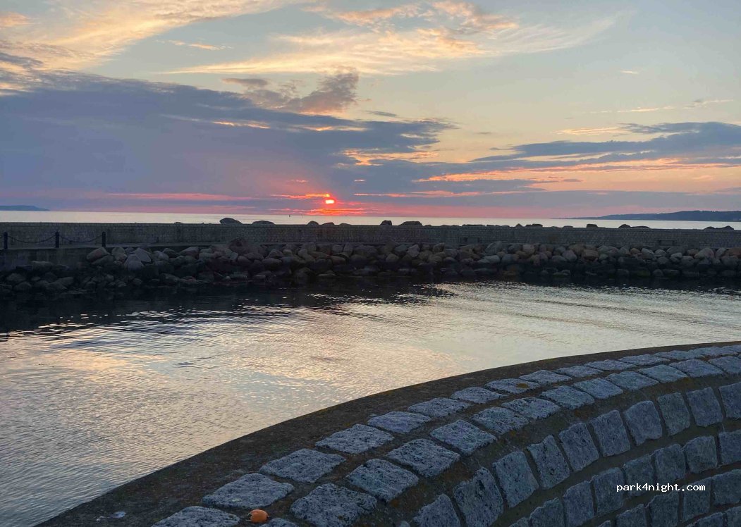 RV sites at the end of the harbor corn. Good and clean sanitary facilities (shower, toilet, sink, sauna, washing machines) with code accessible. Electricity incl. Very central, beach within walking distance. Perfect for city exploration. You pay at the easy-to-understand machine at the building next door (harbor master). At least over the weekend, however, many different people like to come by late at night to loudly present their cars with music. From Oldie Schnulzen over rap, pop to Arabic music everything is offered in 15 minutes change. Nerves v. A. At the price. With a quiet night it was at least with me only conditionally something else good if not cheap