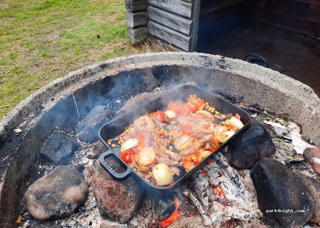 You stay directly next to a river and close to the main road. There's a very clean and non-stinky dry toilet. A cabin and fireplace with free firewood are available. Two picnic tables are available. Swimming is possible, but the entrance is a bit muddy.