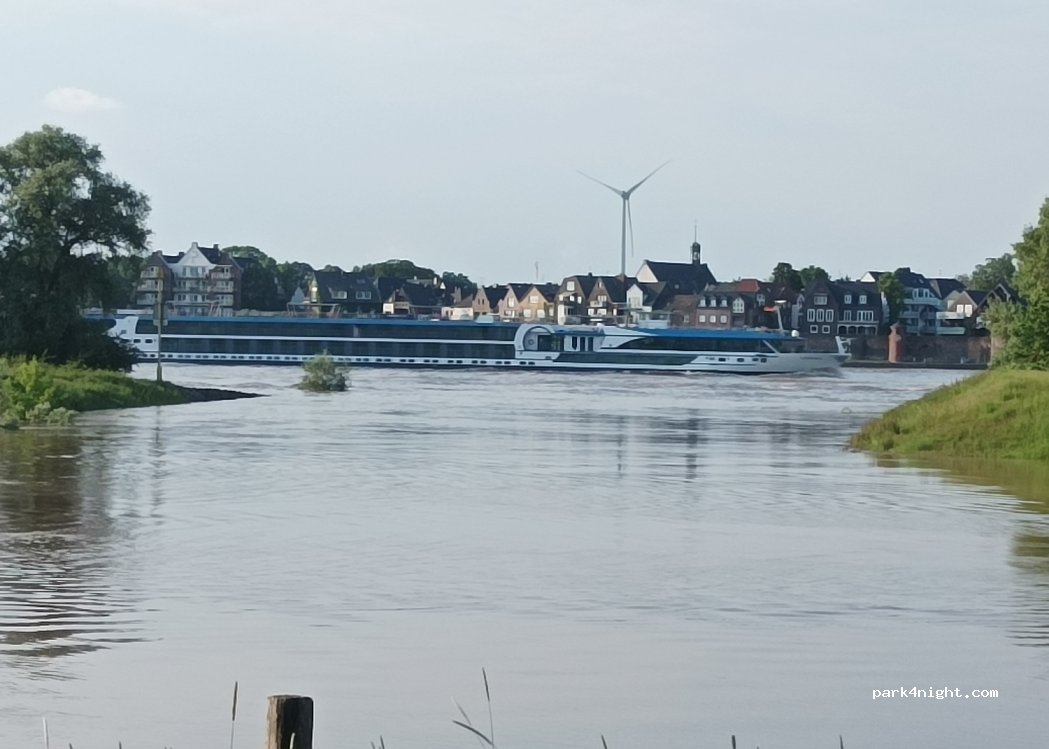 Auf dem Parkplatz ist es am Abend sehr ruhig. Schöner Blick auf den Rhein und die Stadt Reese.