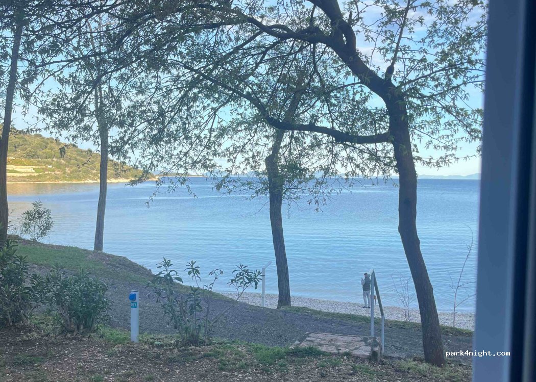Sehr schön gelegen, mega sauberer Wasser und schöne steinige Strand, gute restaurant vor Ort.Grosse Pool für Kinder.Grosse Camping also halt nicht für jeden.Toiletten,Duschen völlig ok.43€ 2erwachsene Kind Strom.jederzeit wieder.