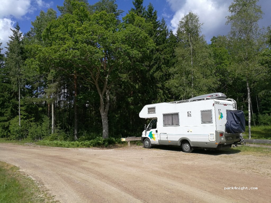 Parking at the entrance to the National Park "Yttre Bodane" with beautiful hiking trails on foot, by bike or by kayak. Still, quiet. Parking on a gravel road accessible, but which is also good with the motorhome passable. Toilets on site.
