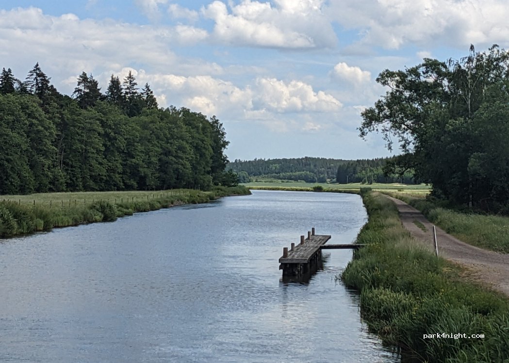 Wir standen auf der Wiese 50 Meter vom Kanal entfernt ohne Strom, dort hat es unendlich Platz. Für uns mit 2 kleinen Kinder war es ideal. Es gibt ein kleines Café mit sehr schönen Sitzgelegenheiten direkt am Kanal. In diesem haben wir den Stellplatz 150 Kronen auch bezahlt. Als Campingplatz würde ich diesen Ort nicht bezeichnen.