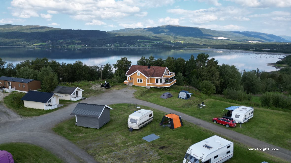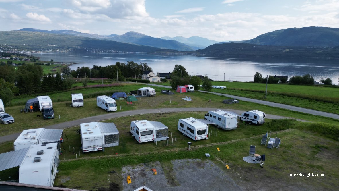 Ein Campingplatz mit schöner Aussicht über den Fjord. Es gibt Stellplätze auf Rasen sowohl für Camper als auch Zelte. Allerdings in der Hauptsaison liegt der Fokus auf den Wohnmobilen, weshalb man mit dem Zelt gebeten wird sich irgendwo dazwischen zu stellen. Nettes Personal, Dusche für 10NOK 5min Warmwasser sind okay, die Sanitäranlagen waren modern und sauber. Es gibt eine Gemeinschaftsküche, Waschmaschine und Trockner (Jeweils 30NOK)