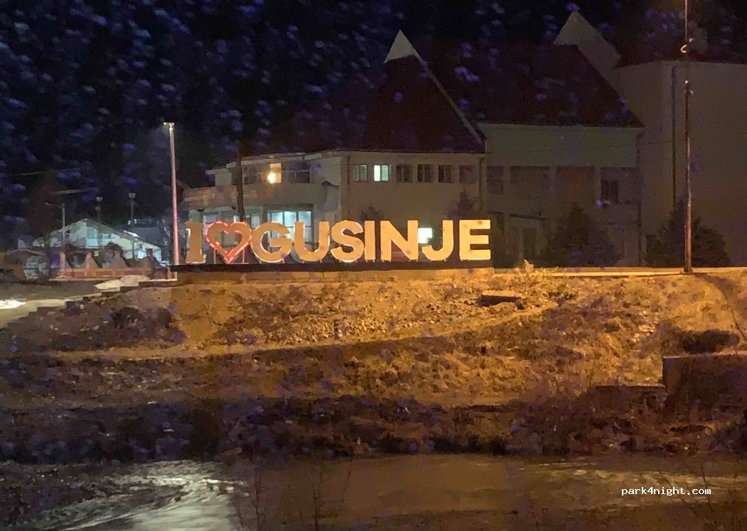 Vaste parking en gravier, plat, à côté de la rivière. Quelques voitures, quelques épaves et l'un ou l'autre bâtiment à l'abandon. Trafic faible pendant la journée et pas du tout la nuit. Proche du centre de Gusinje et ses commerces. Balades à vélo dans les environs : Plav et son lac, Vermosh (Albanie). Belles randonnés à proximité dans le Parc National Prokletije au départ de Grebaje (7 km par une route étroite). Si l'environnement immédiat pourrait être amélioré, les montagnes offrent un magnifique décor.