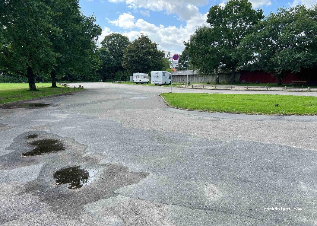 Parcheggio vicino a un grande prato molto comodo per visitre la città di Odense (30 min a piedi). Il parcheggio è a lato di un parciapiede frequentato dai locali ma tutti cordiali. Notte tranquilla. Al risveglio parcheggio pieno di macchine, ma si svuota il pomeriggio/sera. Parcheggi larghi e comodi con un po' di erba.