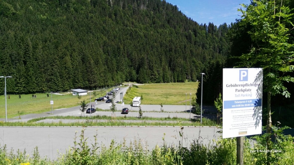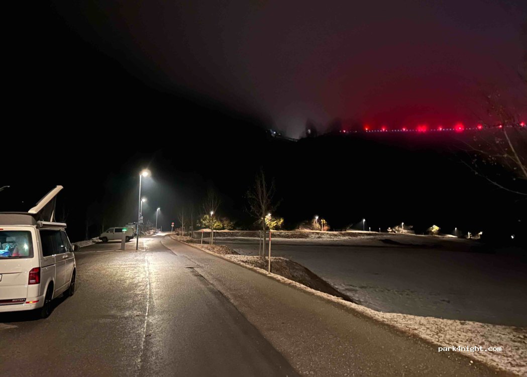 Großer Parkplatz, von 8-22.00Uhr = 5€ Übernachtung verboten!