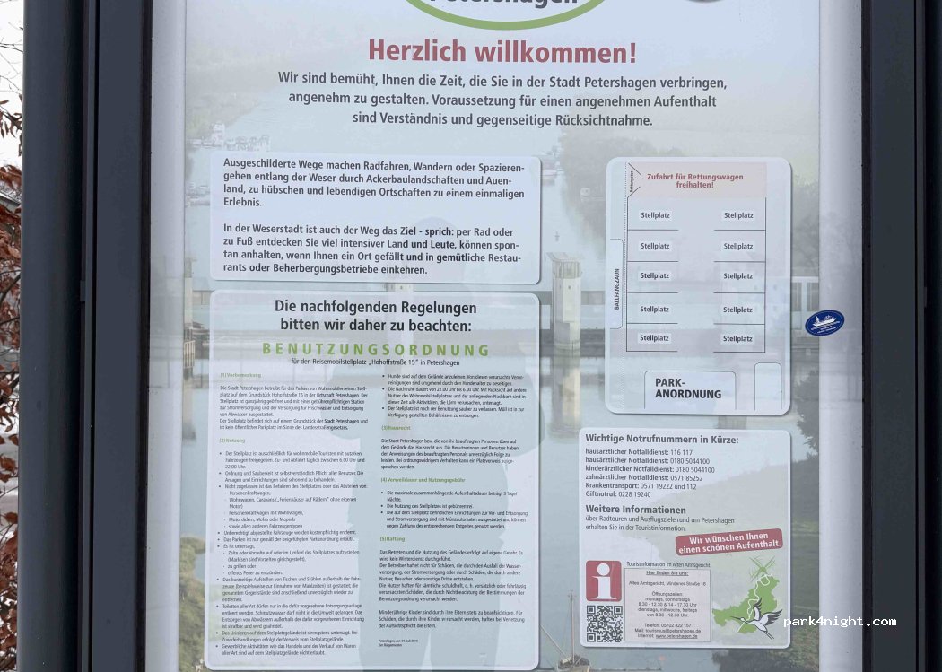 Der Platz ist wie beschrieben. Nachts ist es ruhig. Tolles Radwegenetz und eine sehenswerte Altstadt. Am Freitag ist Wochenmarkt, der Besuch dort lohnt sich. Ein Dank an die Stadt Petershagen für den kostenlosen Stellplatz!