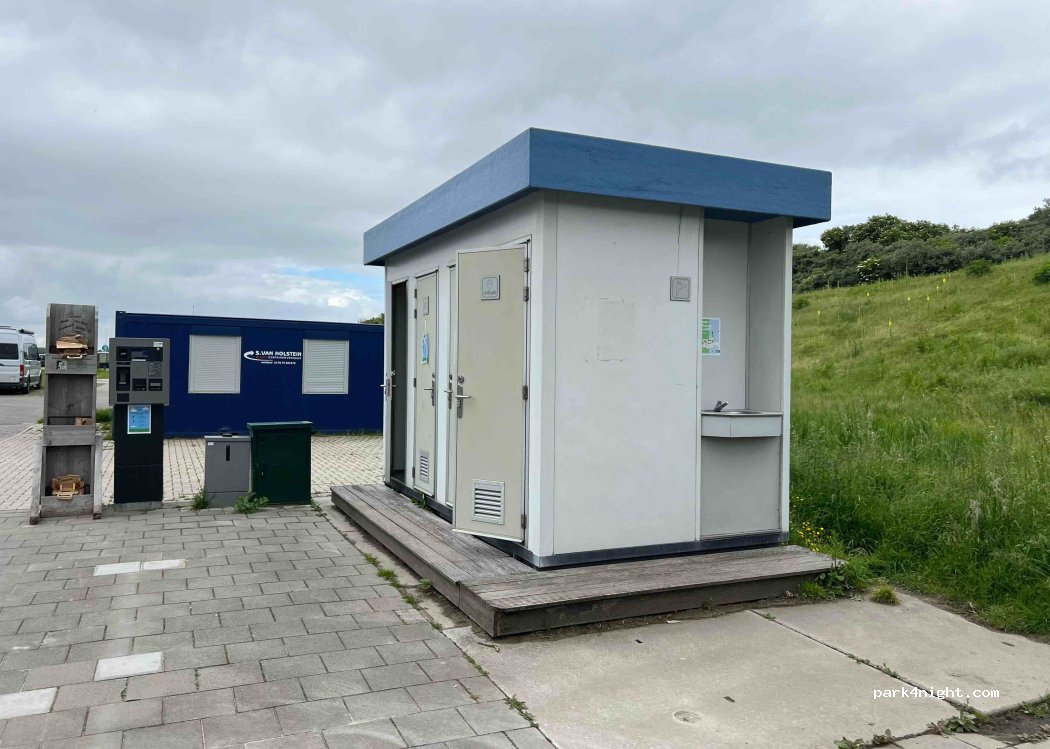 Bezahlter Parkplatz, nur 2 Gehminuten vom Strand entfernt, hat nur bis 18:00 Uhr ein Badezimmer und muss Wasser nachfüllen.