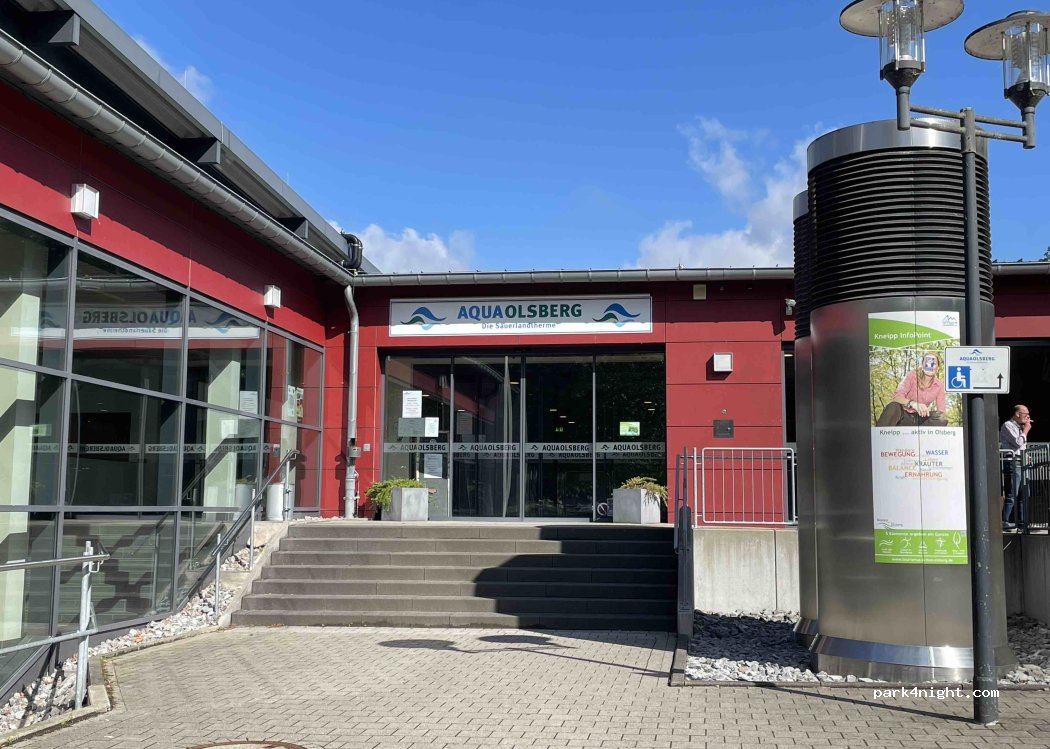 Achtung falsche Adresse. Richtig: Zur Sauerlandtherme 1. Falls nicht im Navi, ab Olsberg Aqua Olsberg/Sauerlandtherme folgen. Gepflegter Stellplatz. Ruhige schöne Lage. Leider recht teuer. Für 1 Person Quick-Check 20-9 Uhr ohne Strom und Wasser 10€ bezahlt. Schade sonst wären es 5 Sterne.