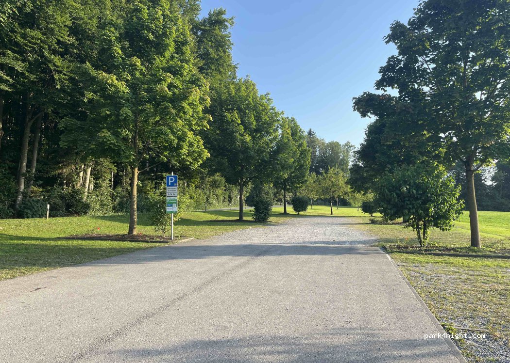 Ebener Parkplatz in der Nähe der Seilbahn am Ortsrand. Verboten zwischen 22 und 6 Uhr.