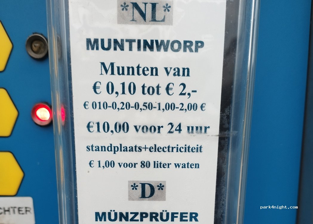 prima plek voor de nacht, de zuil geeft aan 1 euro 80 liter, dit klopt echt niet. ik was 2 euro nodig om zon 70 liter water te krijgen... en neem je eigen adapter mee, er zit geen koppeling op, enkel schroefdraad.