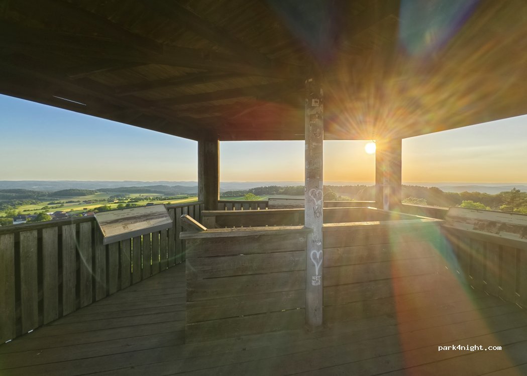 Schöner Parkplatz bei einem Ausichtsturm. Auch Abends kommen immer wieder mal Leute um auf den Turm zu steigen, sonst ruhig. Am Wochenende relativ viele Camper.