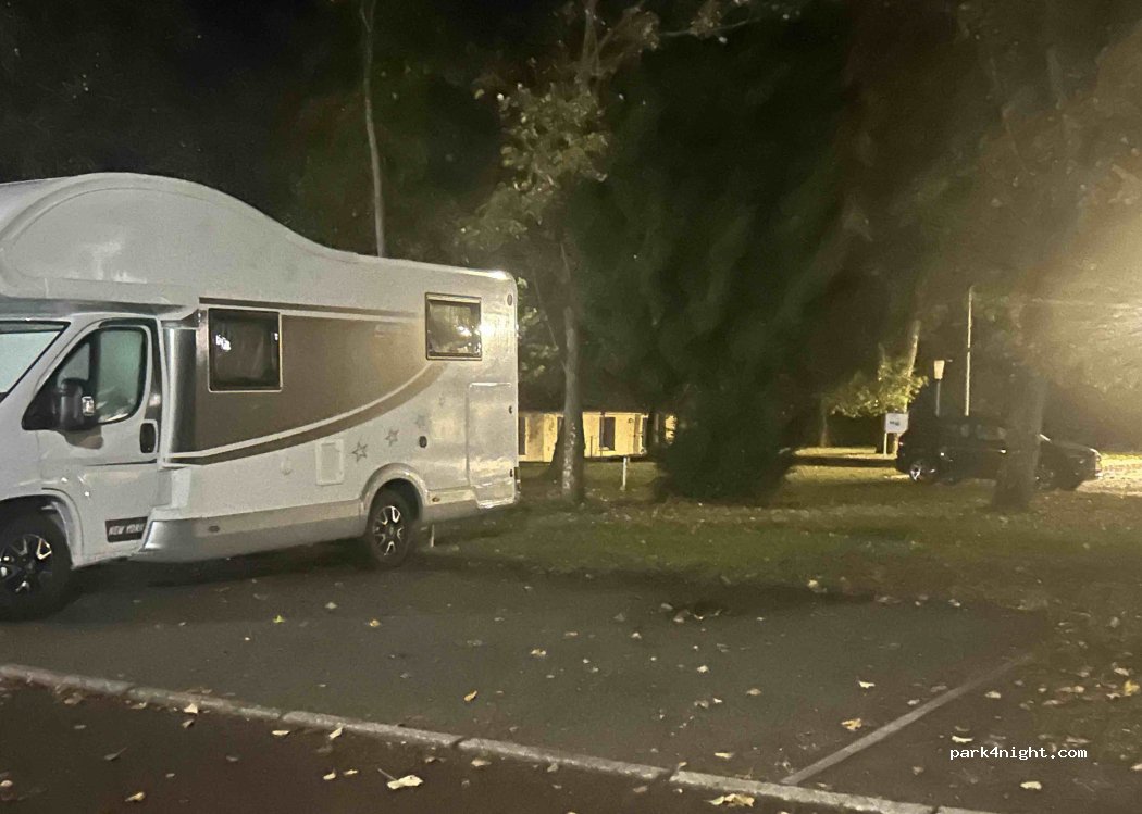 Parking public sur un terrain de sport et une école. Très calme le week-end. Boulangeries, marché alimentaire, restaurant grec à distance de marche. Idéal pour une nuit en transit.