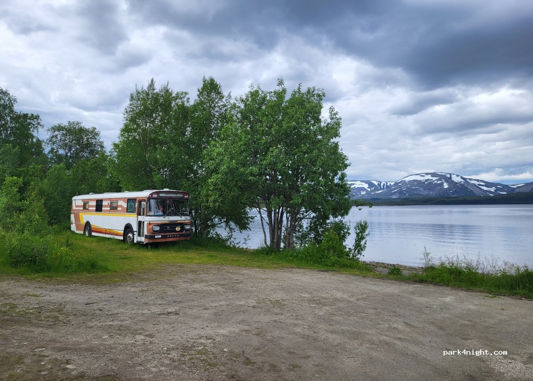Bel posto dove passare la notte, molto tranquillo e accanto al lago. Un po’ inquietante la presenza del bus scolastico, dovrebbe essere abbandonato ma di sera si accendono alcune lampadine interne :) Un po’ rumoroso per la presenza della E6 e del treno, ma fattibile. Posto per 3-4 camper.