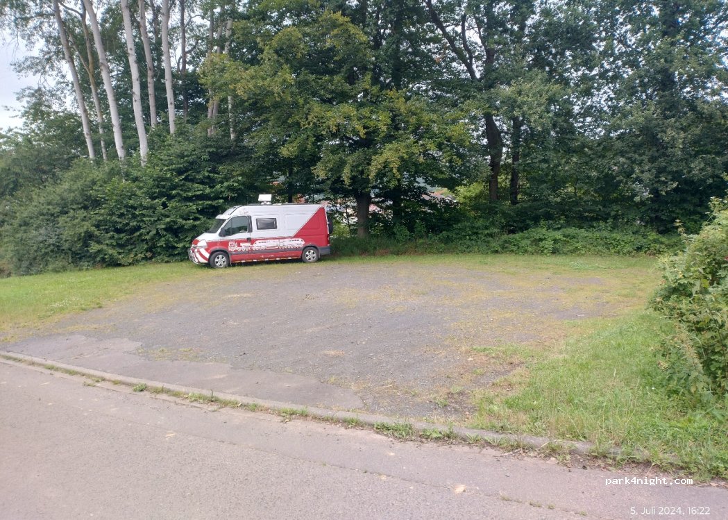 Kostenlose Parkplätze in der Nähe des Friedhofs des Ortsteils Gelnhausen - Höchst. Fast ebene Fläche auf 2 Terrassen mit Platz für ca. 6 Wohnmobile. Ohne Strom, keine Versorgung, keine Entsorgung – also dringende Bitte, Müll nicht liegen zu lassen.