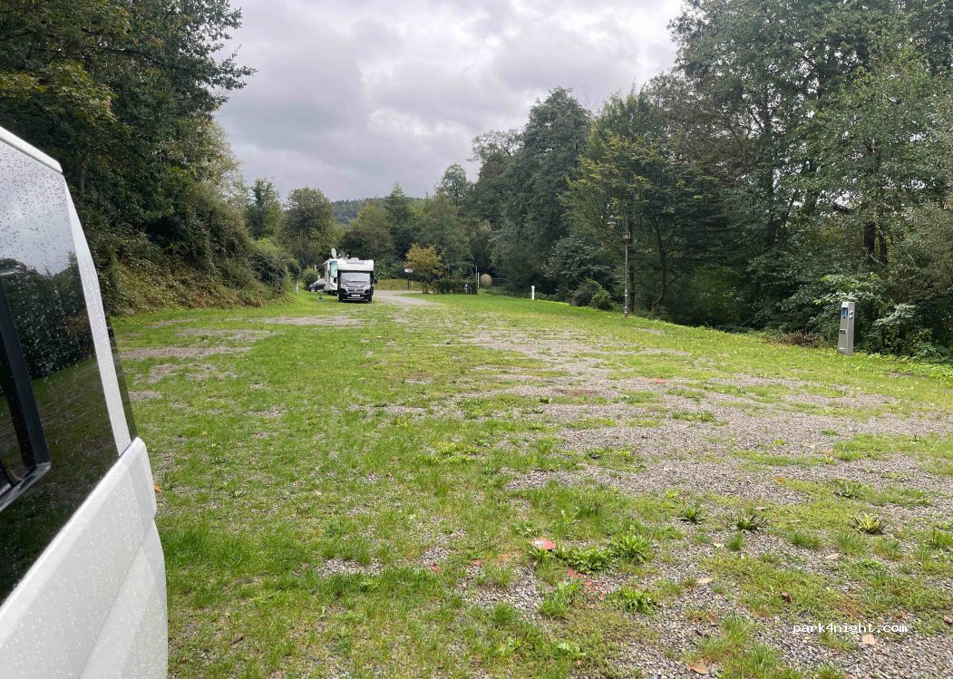 Der Stellplatz liegt nebem einem Bach, und ist von grossen Bäumen umringt die im Sommer gut Schatten spenden, sehr ruhig, wir stehen auf Schotter leicht abfallend, und haben eine sehr ruhige Nacht verbracht. 9,- Euro für 24 Std. sind ok. Es ist auch noch eine Wassertretanlage direkt daneben.Der Besuch des Brauhauses Barbarosse ist sehr empfehlenswert.