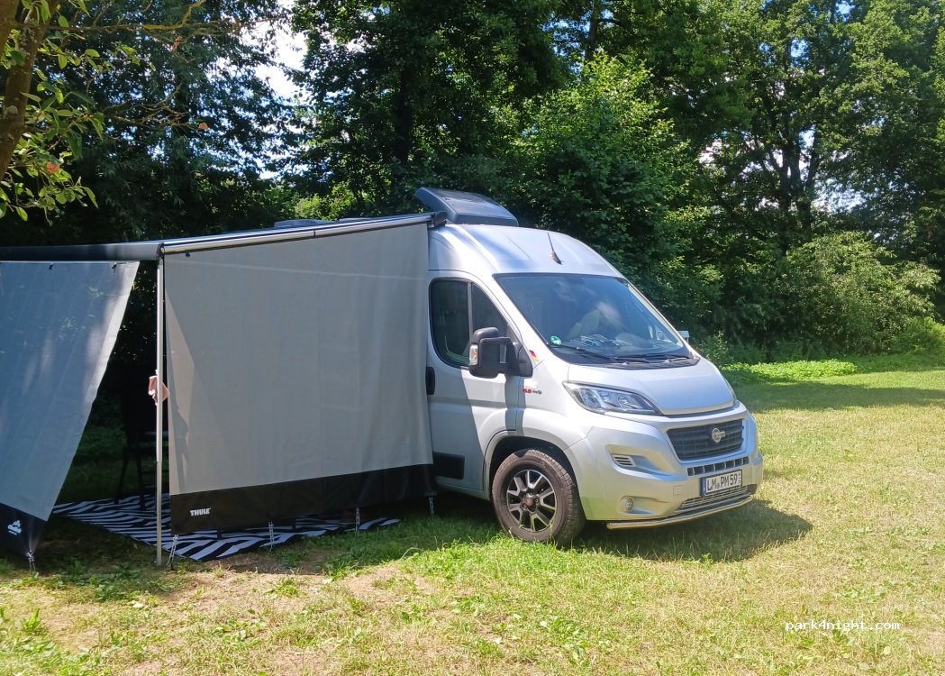 Haben hier wunderbar gestanden. Schön im Grünen und relativ ruhig. Sonne ist so ziemlich von morgens bis abends da :)