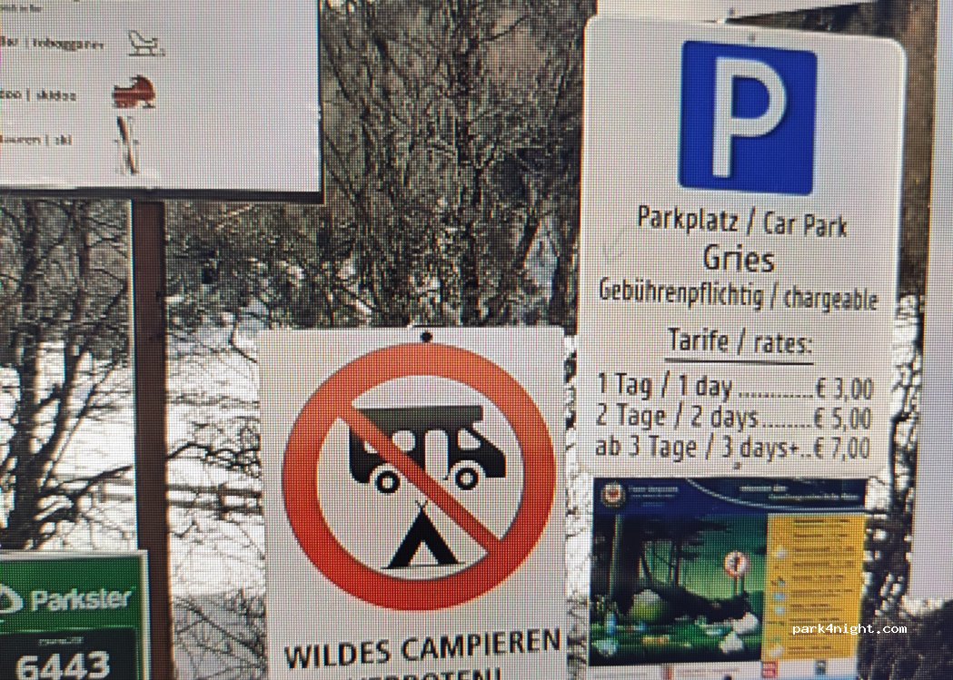 Grand parking juste à l'extérieur de Gries. Excellentes installations de toilette et une vue imprenable. Beaucoup de randonnée, vélo et escalade d'ici. Längenfeld est juste en bas de la rue avec beaucoup de magasins etc. Aucun autre service de campeur ne conviendrait plus aux campeurs sauvages.