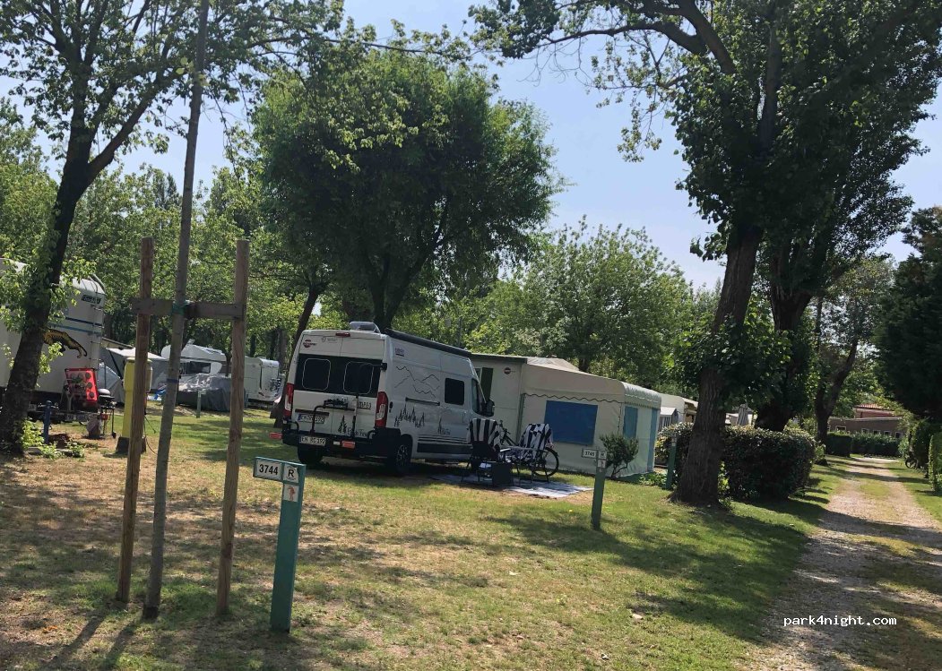 Sehr durchorganisierter Platz mit einer wahnsinnigen Orga, viele Läden und Restaurants direkt am Platz und mehrere Zugänge zum See. Wer Animation und Spaß will, ist hier gut aufgehoben. Wir haben für zwei Nächte, zwei Personen mit Strom und Wasser 100€ bezahlt. Innerhalb von 1,5 h ist man in Venedig, das lohnt sich sehr!