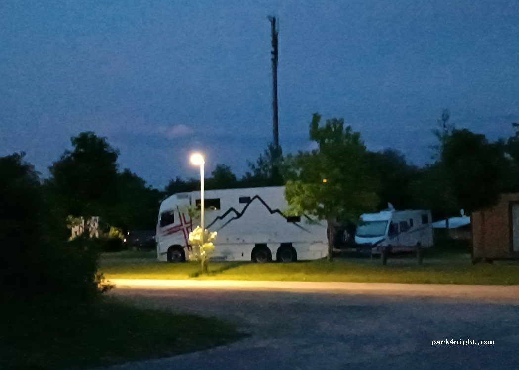 Grote camperplaats met ruime plekken. Kaartje kopen bij de automaat. Stroompalen voldoende en werkt met muntjes. Ondanks vele campers hadden we een zeer rustige nacht. We missen alleen waterpunten. Ideaal voor 1 overnachting onderweg.