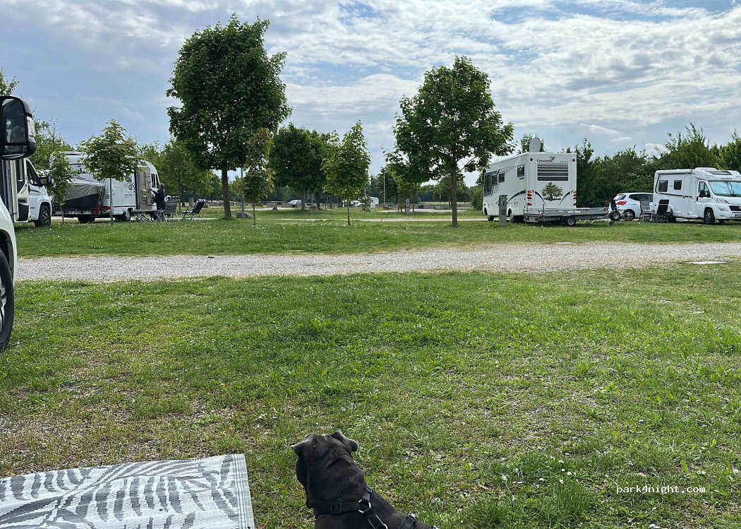 L'aire de camping car situé juste à côté d'un camping et d'un grand parking. Très pratique si vous voulez vous restaurer. Site agréable, avec un accès aux pistes cyclables le long du Rhin.