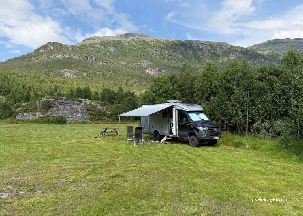 Hier haben wir eine ruhige Nacht verbracht!Wir wurden freundlich empfangen.Bezahlt haben wir für 2 Personen und Van 230NOK. Zuzüglich 40NOK Strom. Mücken gibt es na klar haben uns aber keine Probleme bereitet.Hier halten wenig Camper wurde uns an der Rezeption gesagt.Wir haben die Ruhe genossen und kommen gerne wieder!