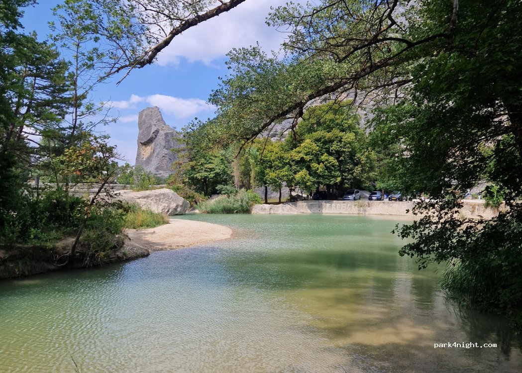 Night parking is absolutely NOT authorized (classified site area). Le claps, natural chaos of rocks in 1442, shadows, swimming, picnic tables, avoid Saturdays and Sundays, very popular.