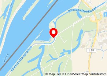 Unmarked large, fairly flat gravel parking lot, between the Rhine and the side canal, also suitable for overnight stays by camper vans over 8 m. No service facilities.