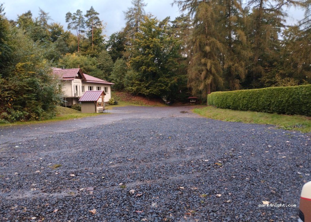 Ruhiger großer Schotterplatz. Für eine Nacht perfekt.Direkt am Wald