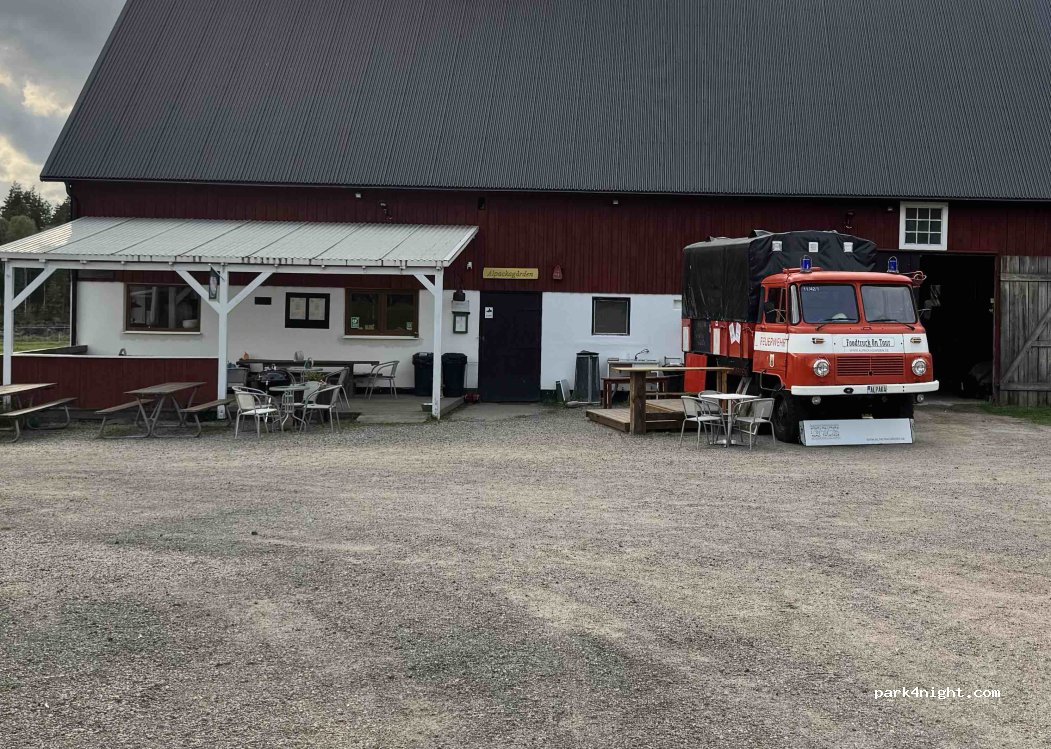 Prachtige parkeerplaats op het erf van een alpacafarm. De eigenaar is een Zweed die Duits spreekt. Toilet, douche, elektriciteit, staanplaats met uitzicht op de alpacaweide. Prachtige wandelpaden en een klein meer in de buurt. Het is de moeite waard om daarheen te gaan. De toegang is via een grindweg, maar die was makkelijk te berijden. Let op: Wanneer u via pad 25 komt, zorg er dan voor dat u bij het officiële alpaca-bord afslaat!!! Vanaf dit jaar serveert de boerderij ook heerlijk eten uit een eigen FOODTRUCK.